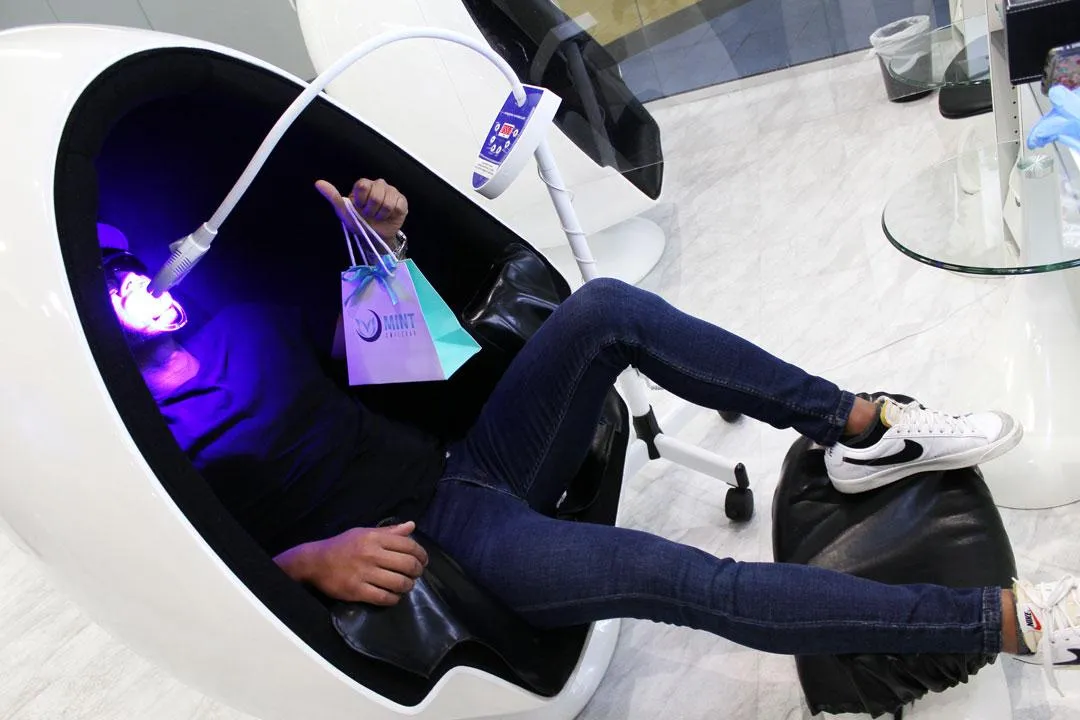 Teeth Whitening at Mint Smilebar is quick, easy & pain free! Our gel is dentist formulated to lift years of staining while causing zero to minimal sensitivity. It's tough on stains yet gentle on your teeth.